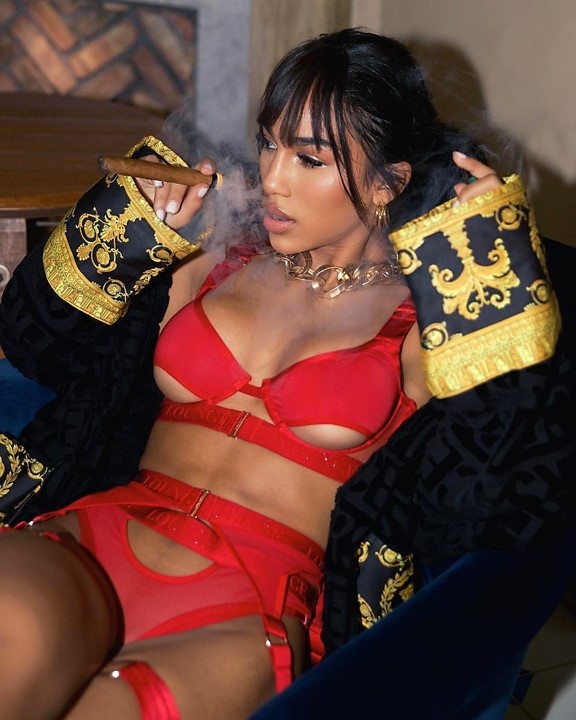 Ensuite des envies plus piquantes lui viennent : savourer et jouer avec un cigare, et échanger la jolie dentelle pour du cuir brut.