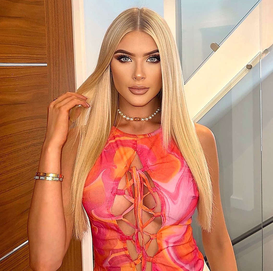 Outre son corps harmonieusement galbé, elle a un regard profond et envoûtant avec ses yeux bleu acier.